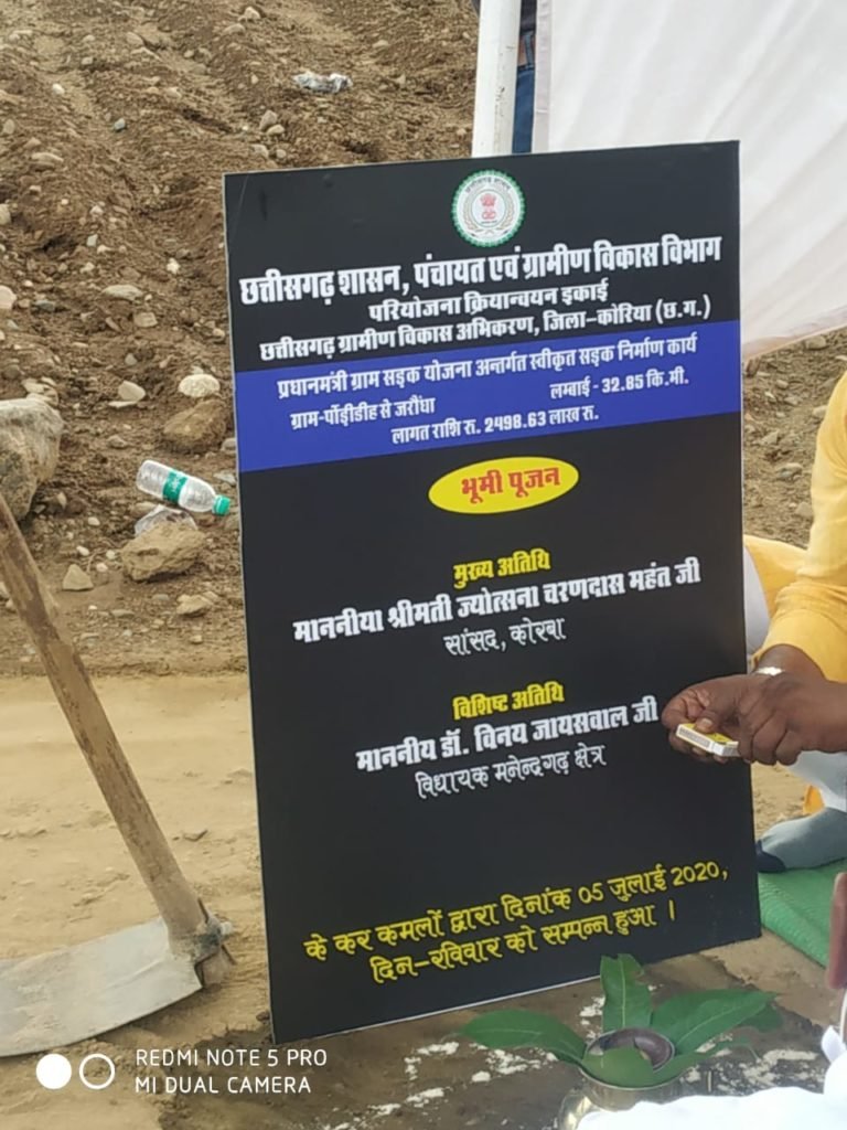 जानकारी अनुसार बीते रविवार को मनेंद्रगढ़ विधान सभा के ग्रामीण अंचल जनपद पंचायत खड़गवां के ग्राम पोड़ीडीह से ग्राम पंचायत जरौधां तक कुल 32.85 किलों मीटर की सड़क का निर्माण करते हुए इसे नेशनल हाइवे मार्ग से जोड़ने का भूमि पूजन किया गया जिसकी लागत 24 करोड़ 98 लाख 63 हजार बताई जा रही है । जिसकी निगरानी जिले की पीएमजीएसआई विभाग द्वारा अपने उच्च अधिकारी के मार्ग दर्शन में करते हुए जमीनी स्तर पर कार्य प्रगति आरंभ कर दिया गया है ।