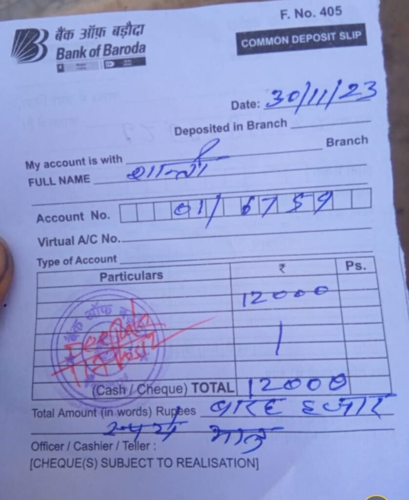 अगर बैंक ऑफ बड़ौदा में है आपका खाता.. हो जाइए सतर्क..आपके साथ भी हो सकती है गड़बड़ी…पहले पैसा लेकर महिला के खाते में नही किया जमा.. खबर प्रकाशन के बाद..महिला को बुला… बैंक प्रबंधन ने दिया पेमेंट…