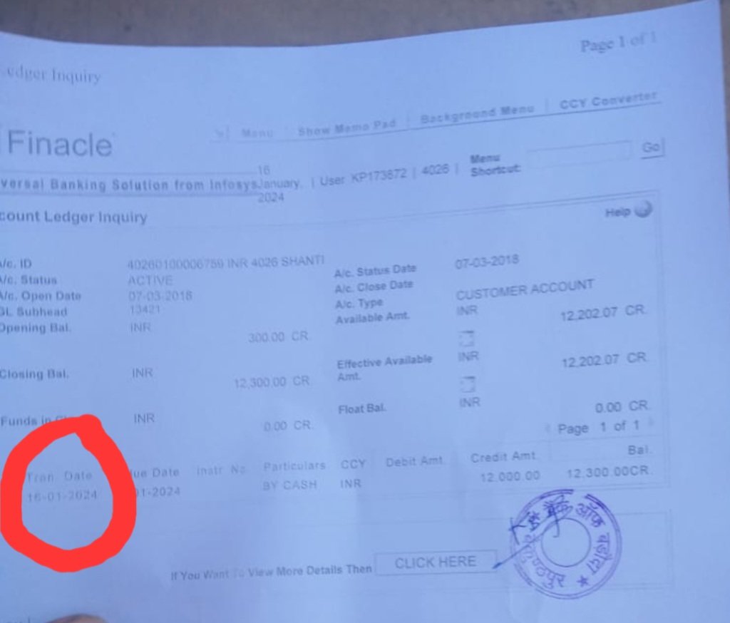जिससे साफ है की बैंक प्रबंधन ने भारी गड़बड़ी करते हुए पैसा 30 नवंबर 2023 को लेकर जमा नहीं किया व खबर प्रकाशन के बाद गड़बड़ी कर लगभग डेढ़ माह बाद 16 जनवरी को उसके खाते में पैसा जमा कर फिर भुगतान किया गया। इससे साफ है की इस तरह एक फ्राड को अंजाम देने की कोशिश की गई। बताया जाता है की लेन देन पासबुक इंट्री के लिए बैंक ने एजेंट बैठा रखा है यह गड़बड़ी संभवत: उसी के द्वारा की जा रही है।