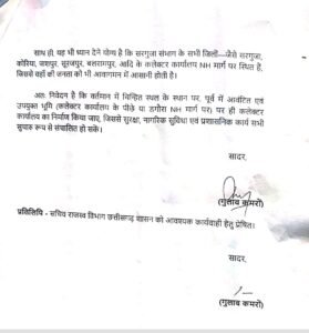 गुलाब कमरों ने अपने पत्र की प्रति सचिव, राजस्व विभाग, छत्तीसगढ़ शासन को भी आवश्यक कार्यवाही के लिए प्रेषित की है। उन्होंने प्रशासन से आग्रह किया कि इस विषय पर शीघ्र निर्णय लेकर नागरिकों की सुविधा और प्रशासन की कार्यकुशलता सुनिश्चित की जाए।