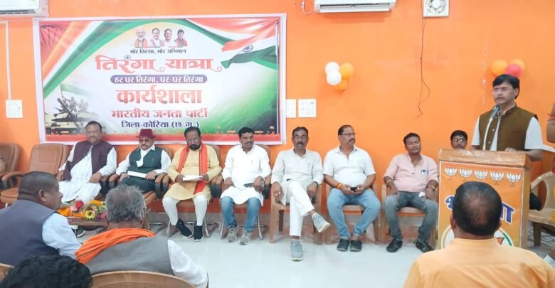 कोरिया/ देश व्यापी तिरंगा यात्रा को संदर्भ में भाजपा जिला कार्यालय छिंदडांड़ बैकुण्ठपुर में जिला कार्यशाला में हर घर तिरंगा यात्रा को सफल बनाने की रणनीति तय की गई। बैठक में मुख्य रूप मे प्रभारी रामकिसुन सिंह, विधायक भईयालाल राजवाड़े, जिलाध्यक्ष देवेन्द्र तिवारी, संयोजक कृष्णबिहारी जायसवाल, पूर्व जिला उपाध्यक्ष शैलेष शिवहरे, जिला उपाध्यक्ष अशोक जायसवाल, बसंत राय, राजेश सिंह, अनिल साहू, रविशंकर राजवाड़े, चुन्नी पैकरा, जिला महामंत्री पंकज गुप्ता, कपिल जायसवाल, जिला पंचायत अध्यक्ष मोहित पैकरा, जिला पंचायत उपाध्यक्ष वंदना राजवाड़े, जनपद अध्यक्ष आशादेवी सोनपाकर, नपाध्यक्ष अरूण जायसवाल, जिला मंत्री शिव कुमारी सोनपाकर, ईश्वर राजवाड़े, शारदा गुप्ता, जिला कोषाध्यक्ष रामकृष्ण शर्मा उपस्थित रहें।