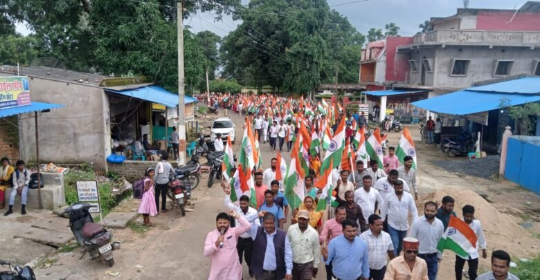 कोरिया/विकासखंड मुख्यालय सोनहत मे हर घर तिरंगा घर घर तिरंगा अभियान के तहत भाजपा जिलाध्यक्ष देवेन्द्र तिवारी के नेतृत्व मे भव्य तिरंगा यात्रा का आयोजन किया गया।