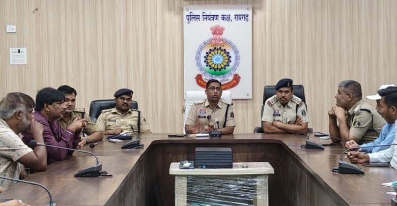 रायगढ़* । आज पुलिस कंट्रोल रूम रायगढ़ में प्रशासन, पुलिस और नगर निगम अधिकारियों की संयुक्त उपस्थिति में शहर के दुर्गा आयोजन समितियों के साथ शांति समिति की बैठक आयोजित की गई। बैठक की अध्यक्षता अतिरिक्त पुलिस अधीक्षक आकाश मरकाम ने की। उन्होंने एक-एक कर सभी आयोजक समितियों से उनके कार्यक्रमों की जानकारी ली और माता दुर्गा की प्रतिमा स्थापना से लेकर विसर्जन तक की व्यवस्थाओं पर विस्तार से चर्चा की।