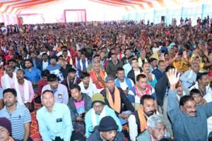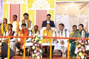 रायगढ़। रायगढ़ जिले के खरसिया विकासखंड अंतर्गत सुदूर आदिवासी अंचल बरगढ़ खोला के ग्राम खम्हार में आयोजित श्री शिव महापुराण कथा में आज मुख्यमंत्री विष्णुदेव साय शामिल हुए। यह भव्य धार्मिक आयोजन देश के प्रधानमंत्री नरेन्द्र मोदी की माताश्री हीराबेन मोदी की पुण्य स्मृति में श्रद्धांजलि स्वरूप आयोजित किया गया है।