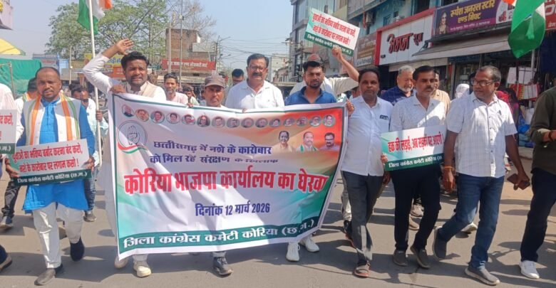 कोरिया। दुर्ग जिले के समोदा गांव में भाजपा कार्यकर्ता द्वारा लगभग 10 एकड़ भूमि पर कथित रूप से अफीम की खेती किए जाने के मामले को लेकर कांग्रेस ने गुरुवार को जोरदार विरोध प्रदर्शन किया। जिला कांग्रेस कमेटी के नेतृत्व में सैकड़ों कार्यकर्ताओं ने भाजपा कार्यालय का घेराव कर राज्य सरकार के खिलाफ जमकर नारेबाजी की।