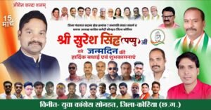 कोरिया/राजनीति में अक्सर शक्ति प्रदर्शन और उत्सवों का दौर देखा जाता है,लेकिन सोनहत ब्लॉक कांग्रेस कमेटी के अध्यक्ष और जिला पंचायत कोरिया के सदस्य सुरेश सिंह ने संवेदनशीलता की एक बड़ी मिसाल पेश की है। क्षेत्र के एक प्रतिभावान छात्र की आकस्मिक मृत्यु से दुखी होकर उन्होंने इस वर्ष अपना जन्मदिन नहीं मनाने का साहसिक और भावुक निर्णय लिया है।
