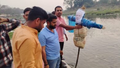 मोदी सरकार का पुतला बनाकर पानी में किया विसर्जित …युवा कांग्रेस नेता आशीष के नेतृत्व में केंद्र की आरएसएस भाजपा सरकार के खिलाफ एक बार फिर खोला मोर्चा ….जो देश के लोकतंत्र को डूबा रहे है ऐसी सरकारों को भी विसर्जित हो जाना चाहिए … विपक्ष विहीन अर्थात लोकतंत्र खतरे में …..युवा कांग्रेस का मोदी के वार पर प्रहार …